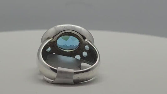 Vintage Blue Topaz Ring 925 Sterling Silver Cocktail