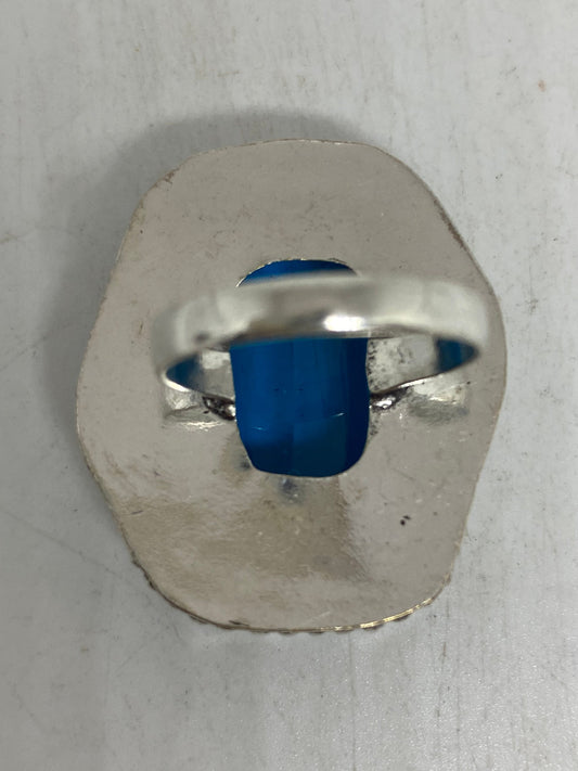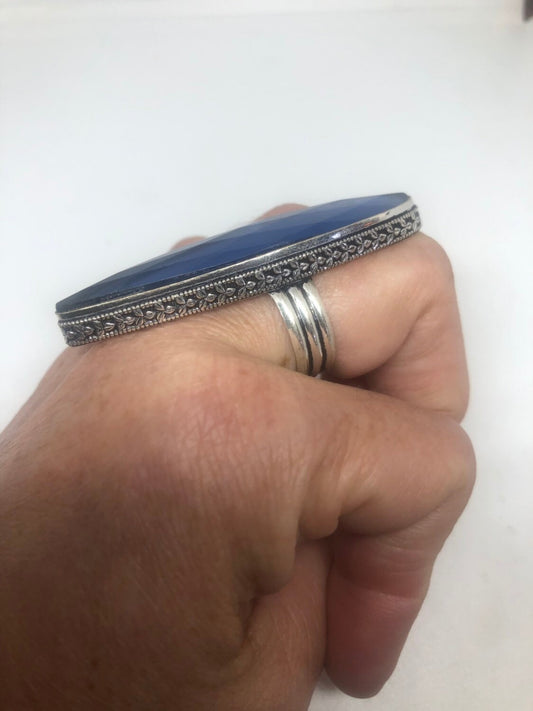 Vintage Blue Vintage Art Glass Ring About 1 Inch Long Knuckle Ring