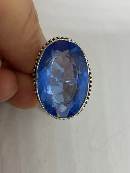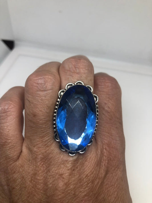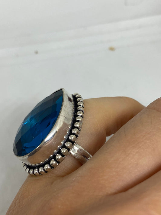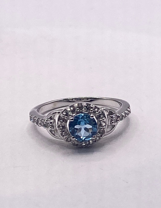 Vintage Blue Topaz White Diamond 925 Sterling Silver Promise Ring