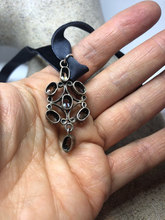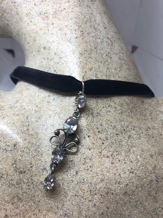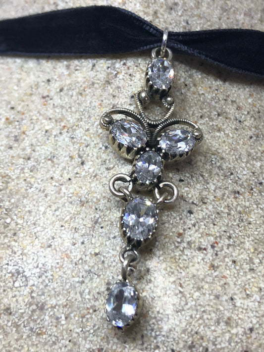 Vintage Handmade 925 Sterling Silver Clear Quartz White Sapphire Pendant