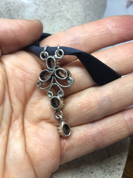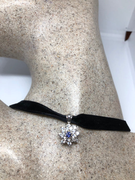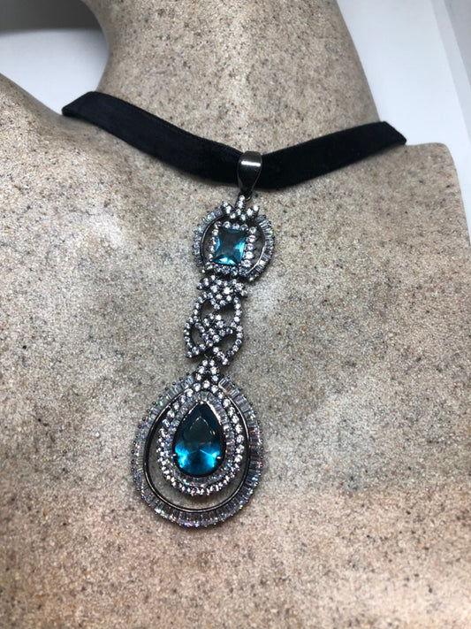 Vintage Handmade 925 Sterling Silver Clear and Blue Crystal Pendant