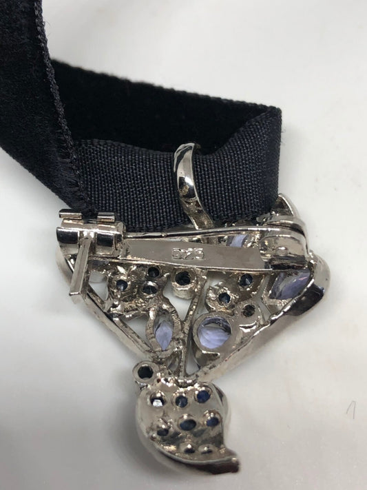 Vintage Handmade 925 Sterling Silver Blue Tanzanite and Sapphire Pendant pin