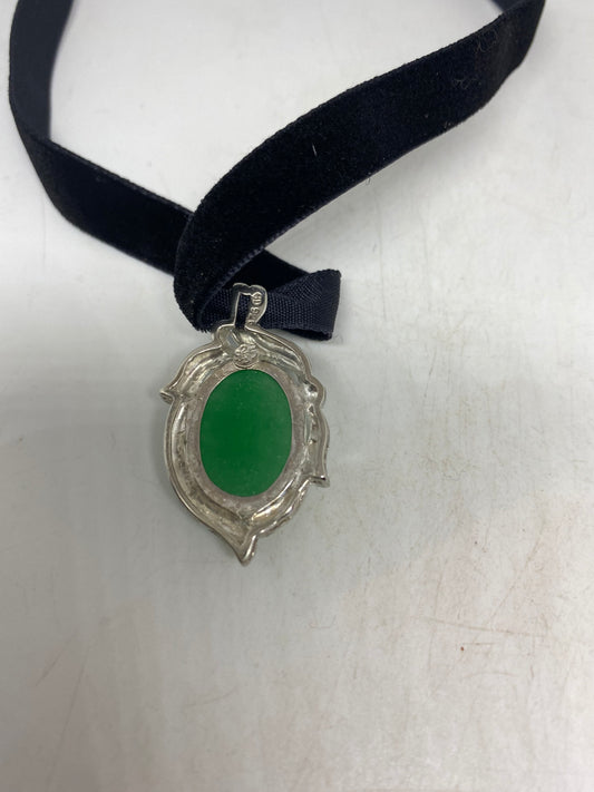 Vintage Handmade Jade 925 Sterling Silver Droplet Pendant