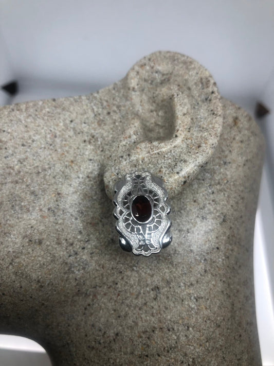 Vintage Handmade 925 Sterling Silver Bohemian Garnet Button Earrings