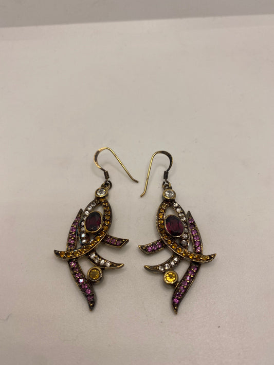 Vintage Handmade 925 Sterling Silver Bohemian Garnet Dangle Chandelier Earrings