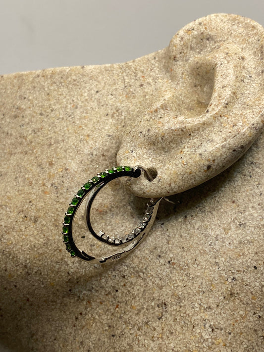 Vintage Handmade 925 Sterling Silver Chrome Diopside Hoop Earrings