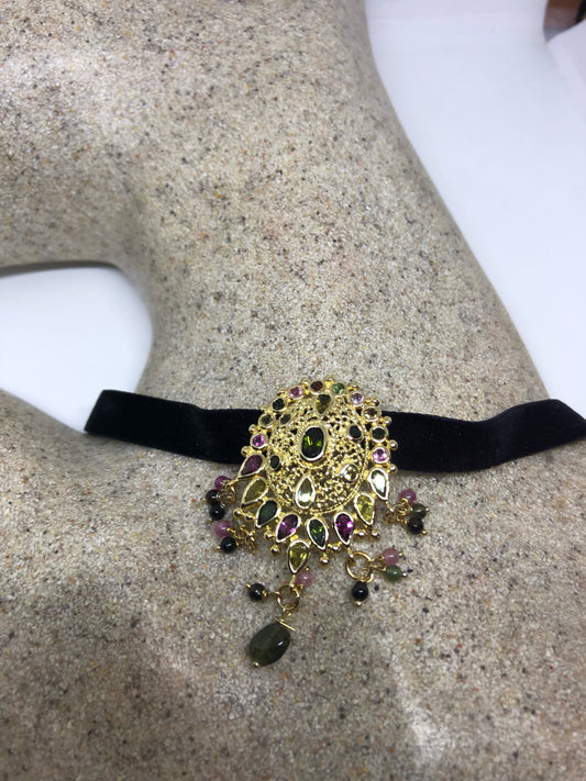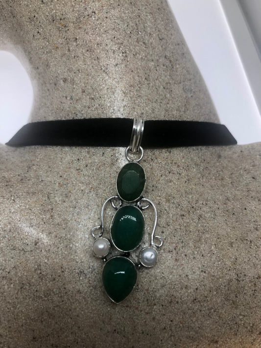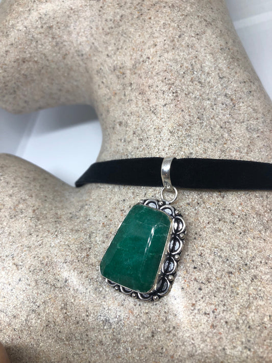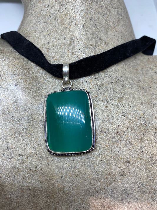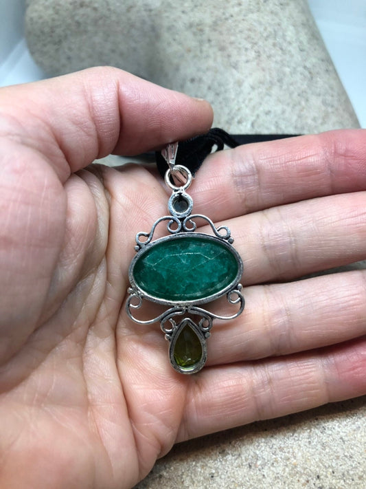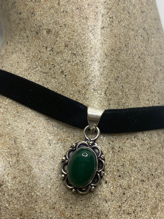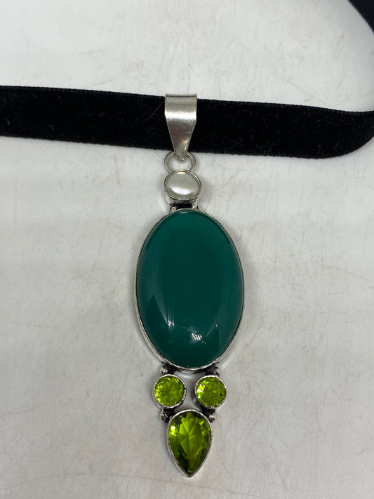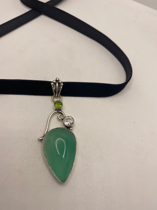 Handmade Vintage Green Chrysoprase Peridot Crystal Choker Pendant