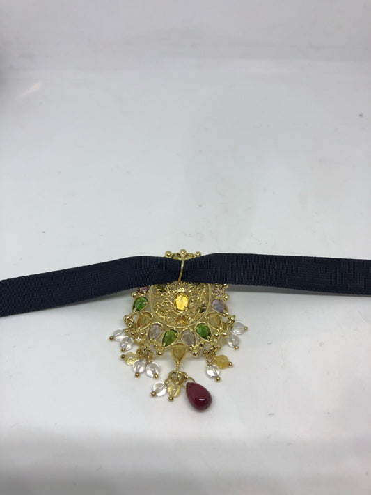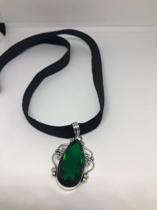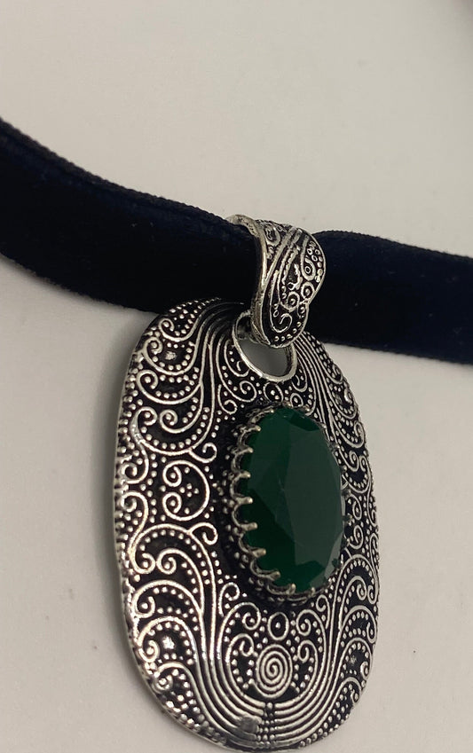 Handmade Vintage Green Glass Crystal Choker Pendant