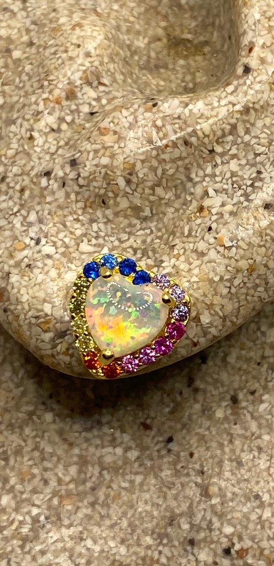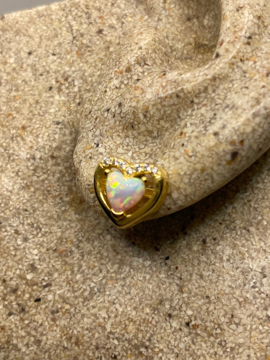 Vintage White Opal HEart Earrings Golden 925 Sterling Silver Stud Button