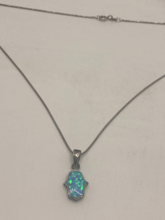 Vintage White Opal Hand Choker 925 Sterling Silver Pendant Necklace