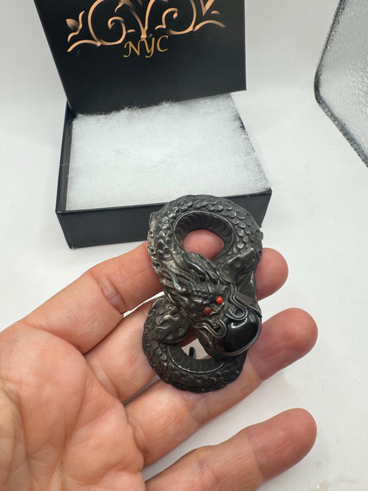 Vintage 925 Sterling Silver Dragon Serpant Belt Buckle Black Star of India Dioptase