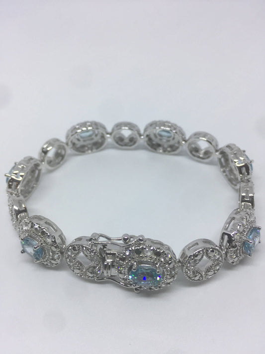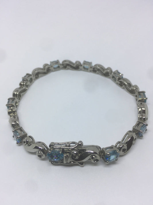 Handmade Genuine Blue Topaz 925 Sterling Silver Tennis Bracelet