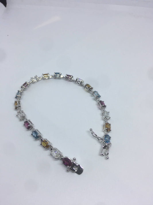 Vintage Garnet Amethyst Citrine in 925 Sterling Silver Tennis Bracelet