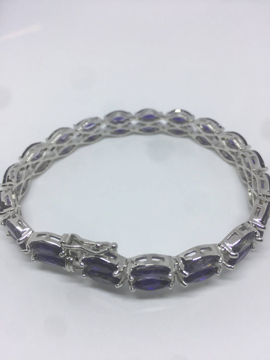 Handmade Genuine Blue Iolite 925 Sterling Silver Tennis Bracelet