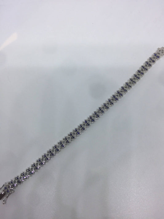 Vintage Blue Black Sapphires 925 Sterling Silver Tennis Bracelet