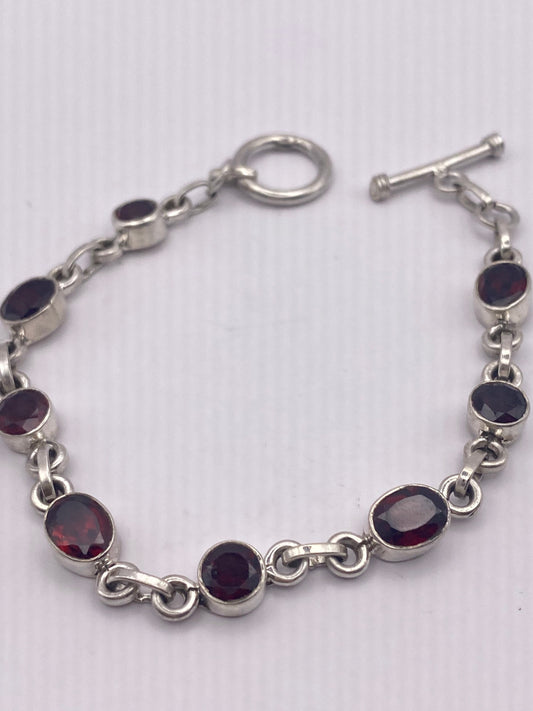 Vintage Bohemian Red Garnet Bracelet 925 Sterling Silver Toggle