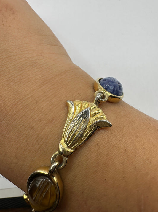 Vintage Scarab Bracelet Gold filled Carved Gemstones