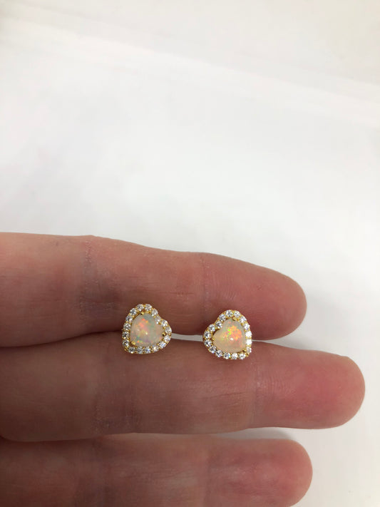 Vintage White Opal HEart Earrings Golden 925 Sterling Silver Stud Button