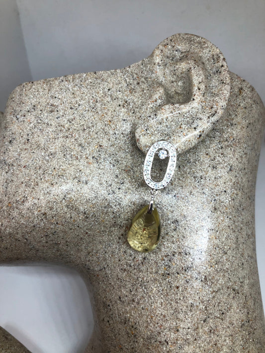 Vintage Genuine White Sapphire Clear Citrine 925 Sterling Silver Dangle Earrings