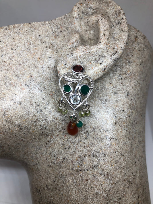 Vintage Mixed Genuine Gemstone 925 Sterling Silver Dangle Earrings