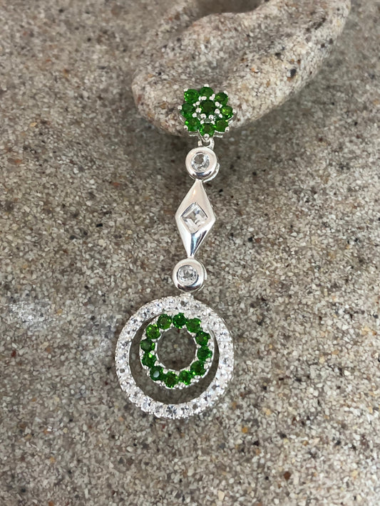 Vintage 925 Sterling Silver Chrome Diopside White Sapphire Chandelier Earrings