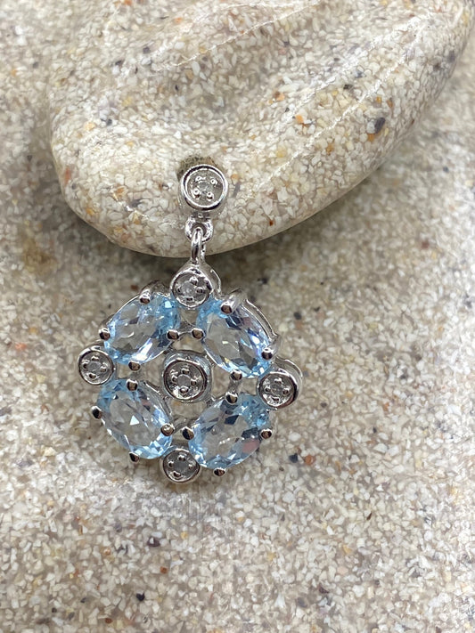 Vintage Blue Topaz Tiny Diamond 925 Sterling Silver Drop Earrings