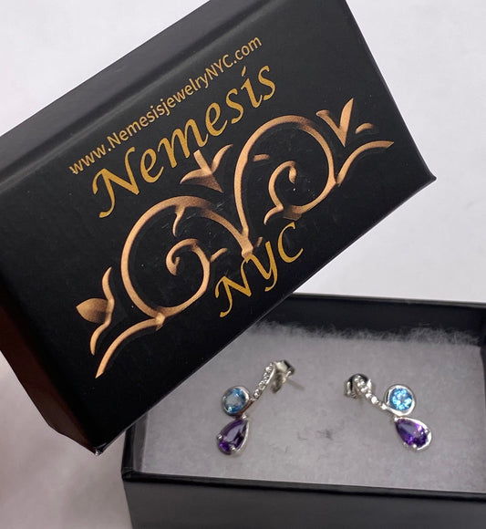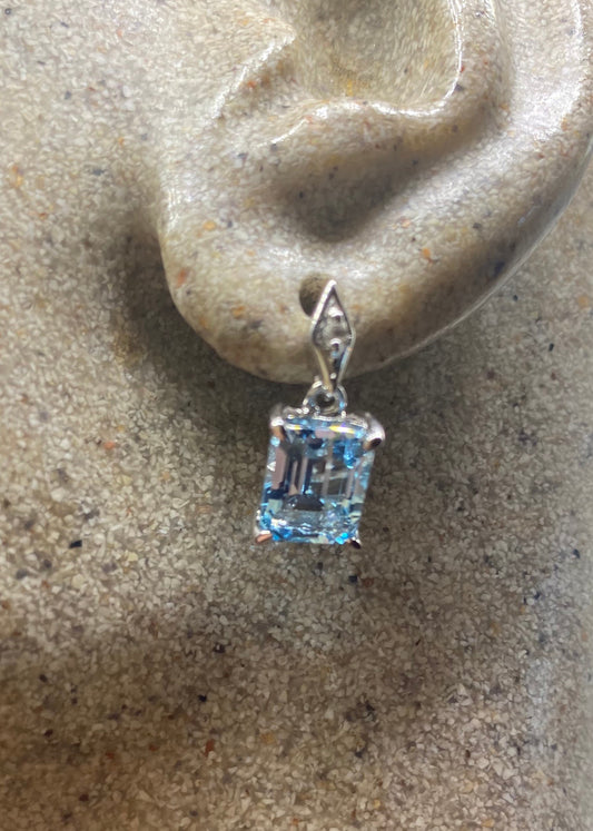 Vintage Blue Topaz White Sapphire 925 Sterling Silver Drop Earrings
