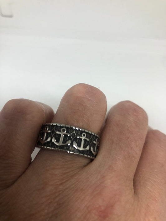Vintage Gothic Silver Stainless Steel Navy Anchor Mens Ring