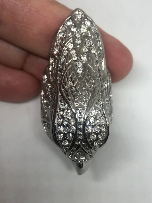 Vintage Native American Style Silver Stainless Steel Mens Hawk CZ Ring