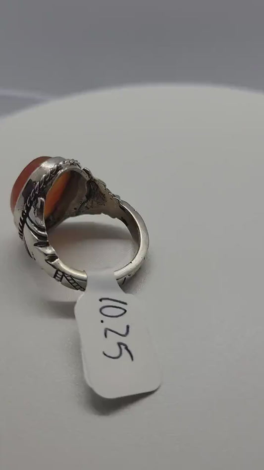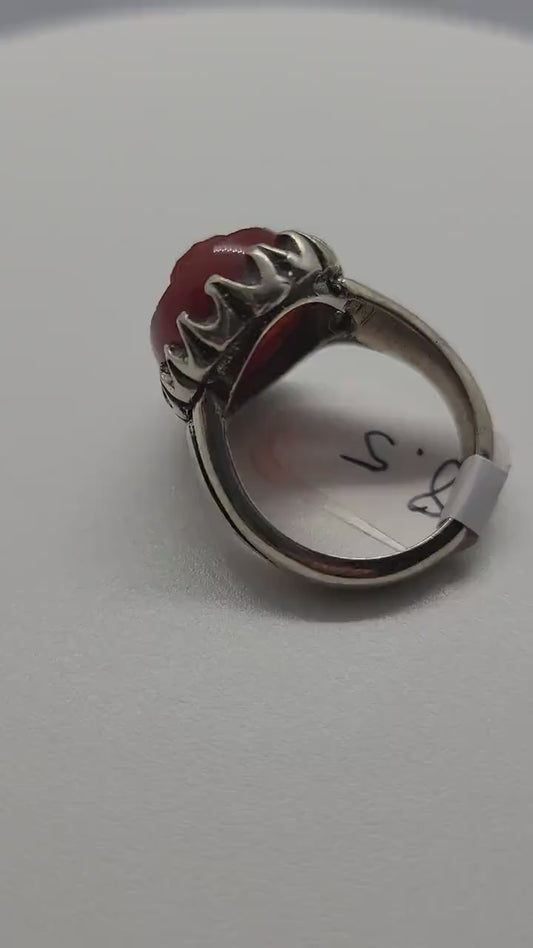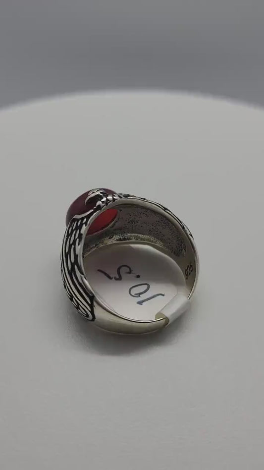 Vintage Carnelian Mens Ring in 925 Sterling Silver Persian Styled Genuine Carnelian in Eagle Setting