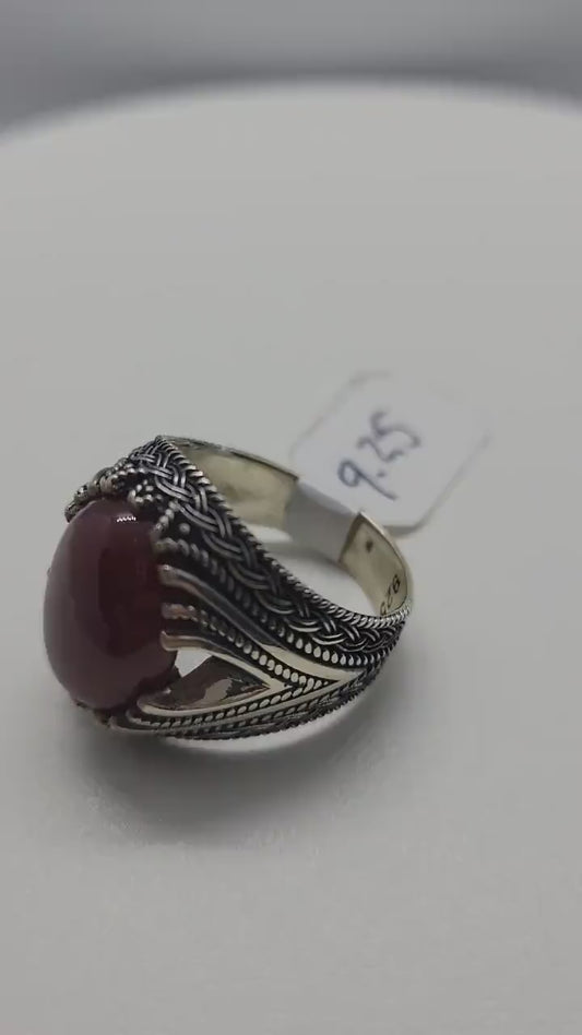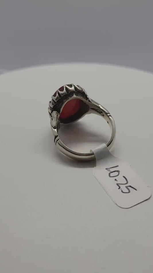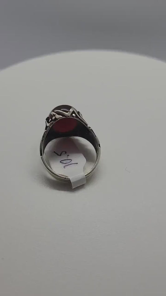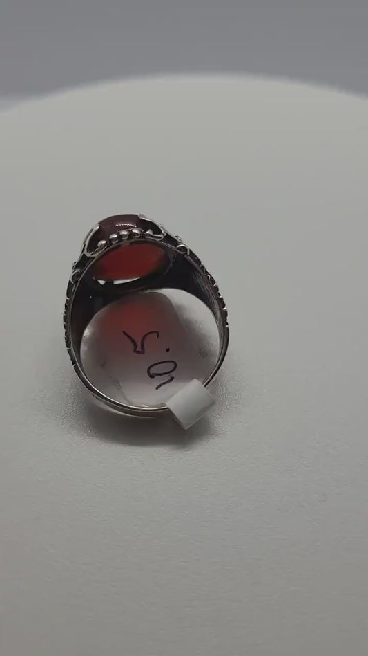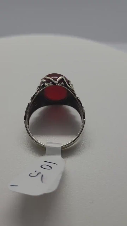 Vintage Carnelian Mens Ring in 925 Sterling Silver Persian Styled Genuine Carnelian