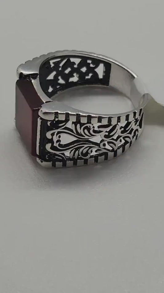 Vintage Carnelian Mens Ring in 925 Sterling Silver Persian-Styled Genuine Carnelian