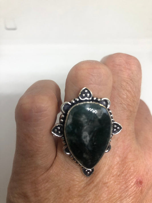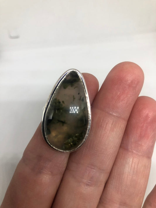 Vintage Green Moss Agate Cocktail Ring