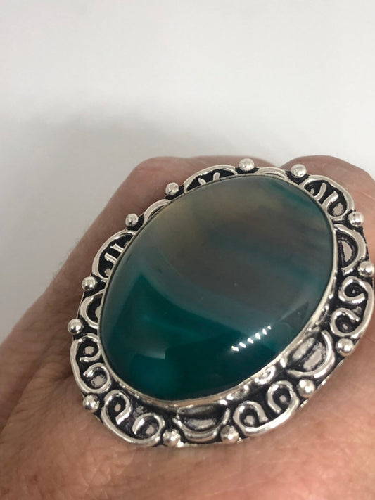 Vintage Green Agate Silver Ring About an Inch Long Knuckle Ring