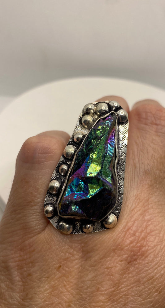Vintage Mystic Peacock Ore Silver Cocktail Ring Size 5.5