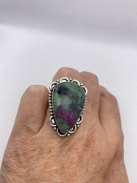 Vintage Handmade Raw Pink Ruby Zoisite Silver Gothic Ring