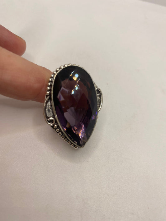 Vintage Genuine Purple Amethyst Glass Ring Size 5.5