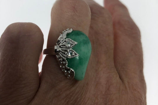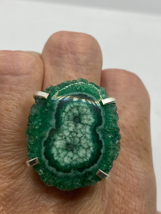 Vintage Green Chrome Diopside Druzy Geode Ring