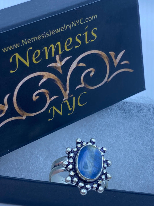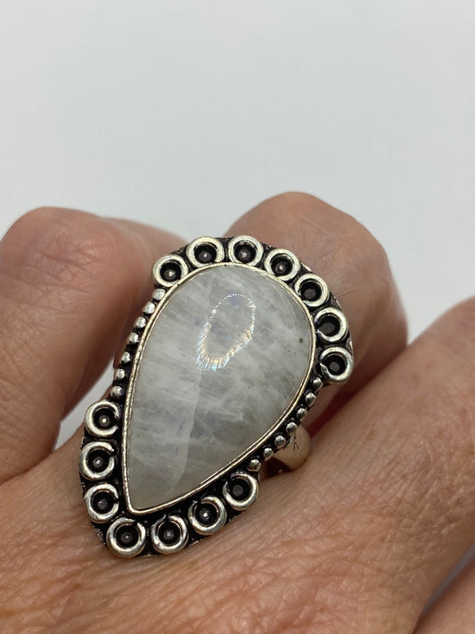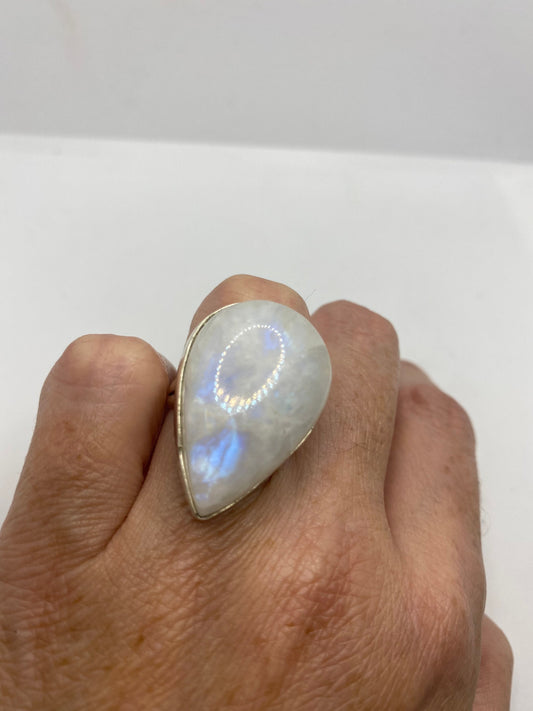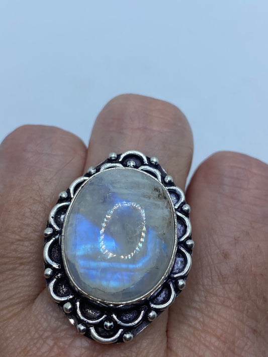 Vintage Genuine Blue White Rainbow Moonstone Ring