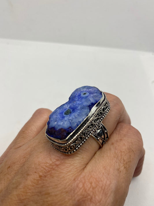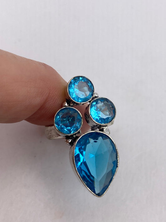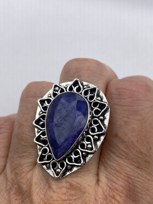 Vintage Deep Blue Sapphire White Bronze Silver Cocktail Ring