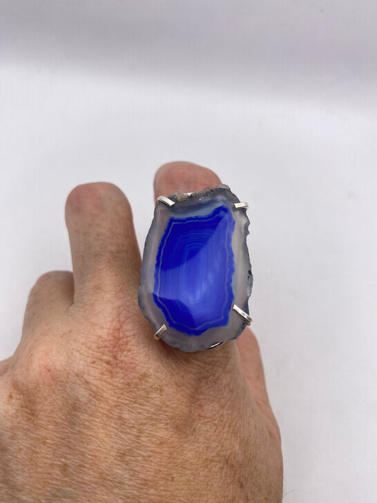 Vintage Aqua Blue Volcanic Art Glass Ring