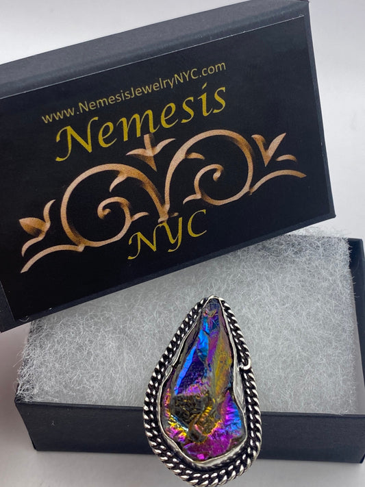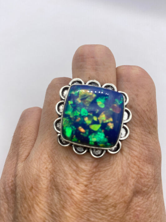 Vintage Mystic Peacock Ore Silver Cocktail Ring Size 9