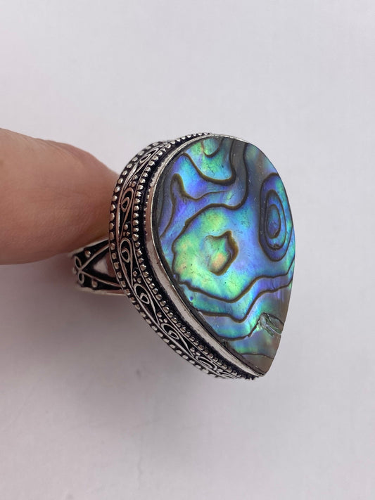 Vintage Green Abalone White Bronze Silver Cocktail Ring