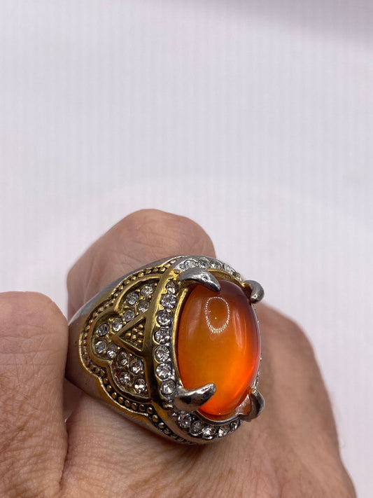 Vintage Handmade Golden Genuine Citrine 925 Sterling Silver Gothic Ring