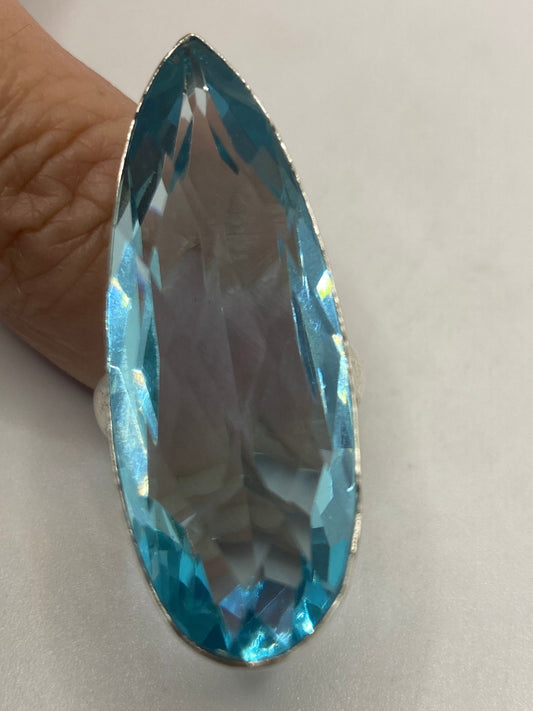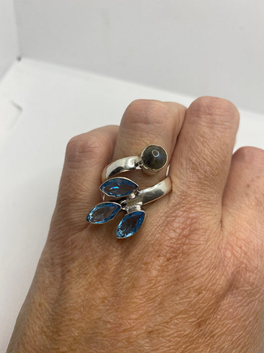 Vintage Labradorite and Blue Topaz Adjustable Ring