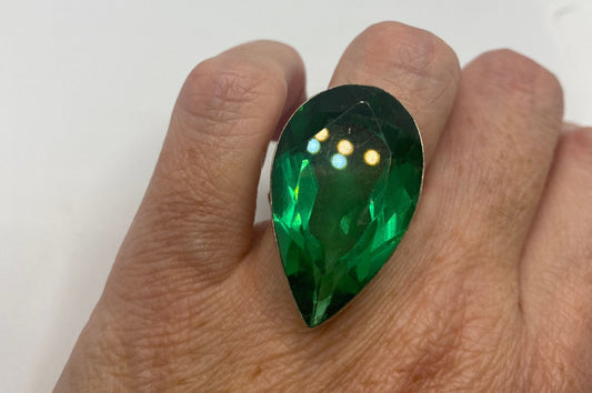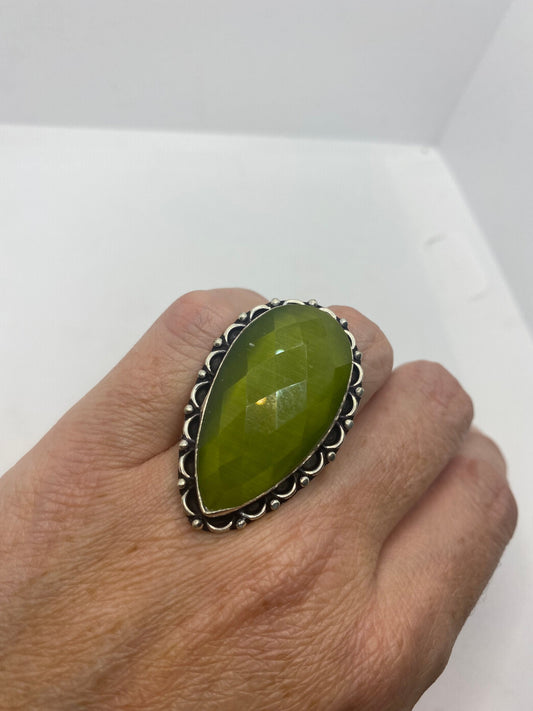 Vintage Green Quartz White Bronze Silver Ring Adjustable