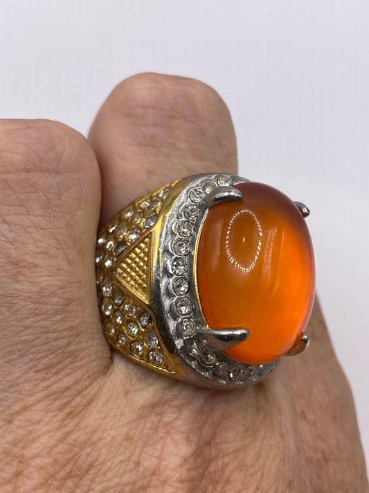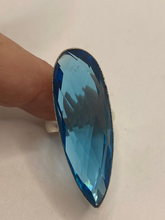 Vintage Genuine Blue White Rainbow Moonstone Ring
