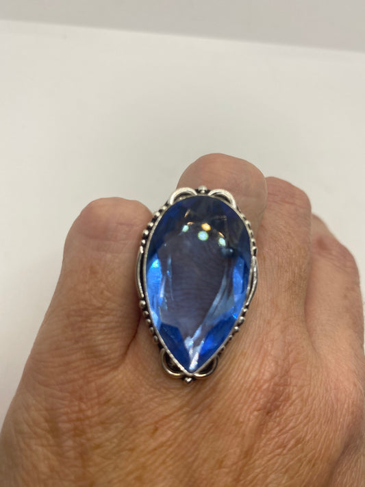 Vintage Genuine Amethyst Blue Tanzanite and White Sapphire 925 Sterling Silver Ring