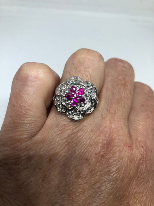 Vintage Handmade Pink Ruby and White Sapphire Setting Sterling Silver Gothic Ring
