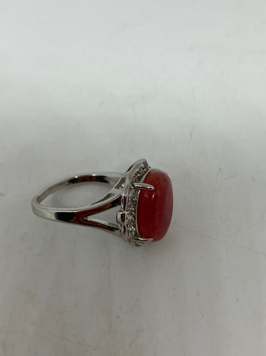 Vintage Pink Rhodocrocite Ring Silver Cocktail